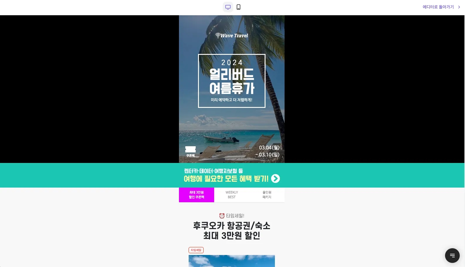 상단의 PC 아이콘을 클릭 하여 PC 모드로 변경해 주세요.