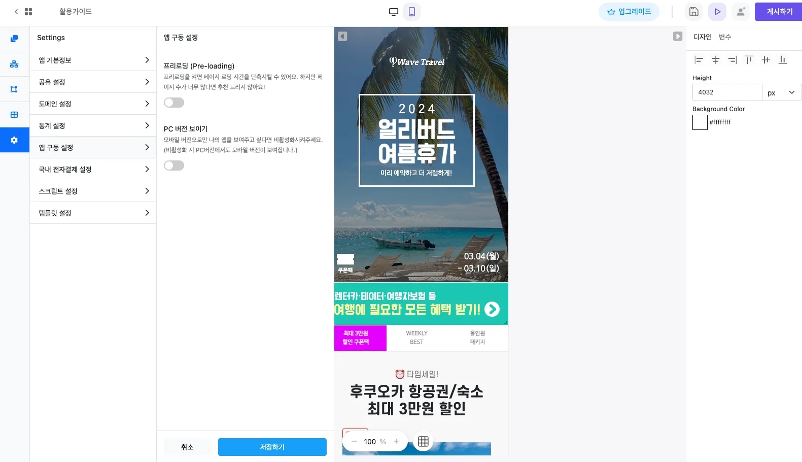 미리보기를 하면 PC 버전에서도 모바일처럼 가운데에 모여있는 형태로 표시 됩니다.