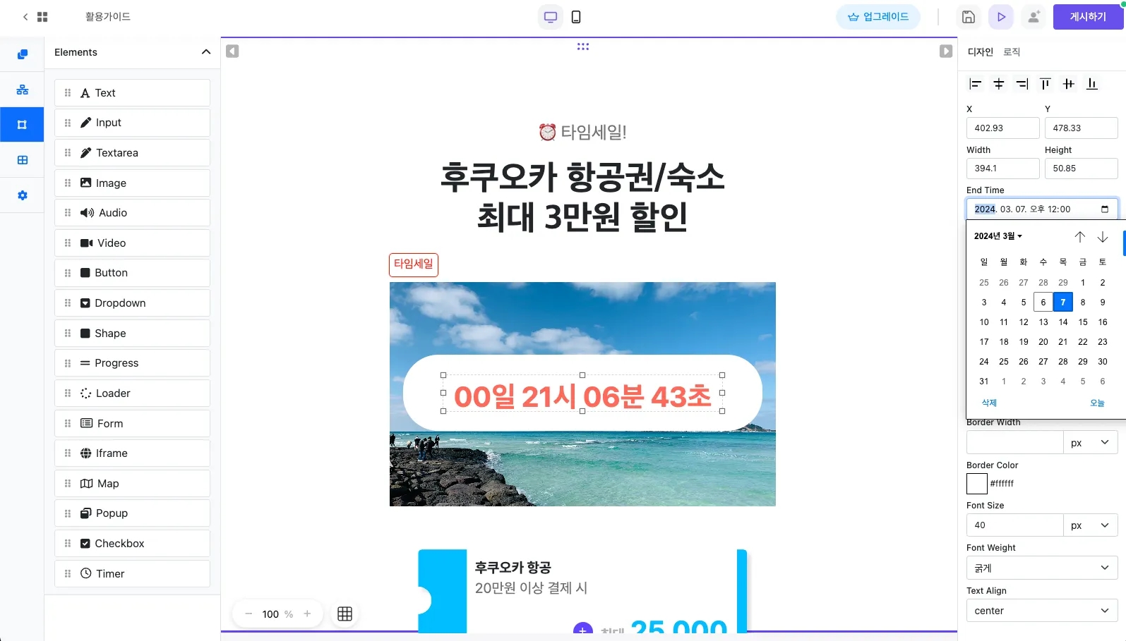 엘리먼트 탭 에서 "Timer" 를 선택하여 화면에 입력 합니다.