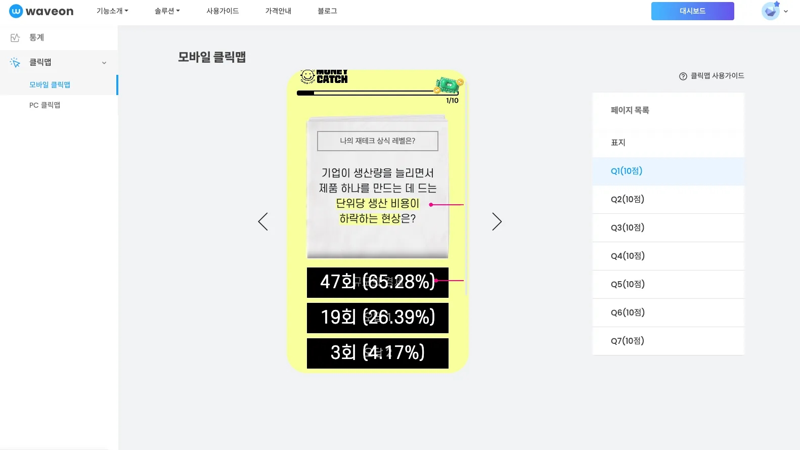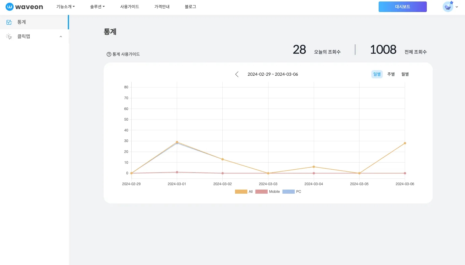 웨이브온 통계 & 클릭맵